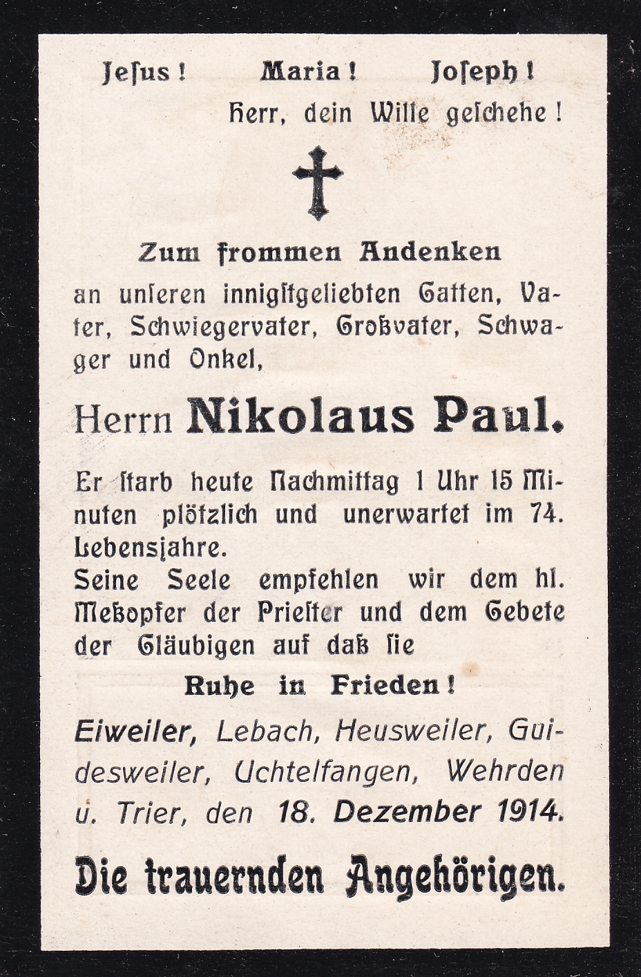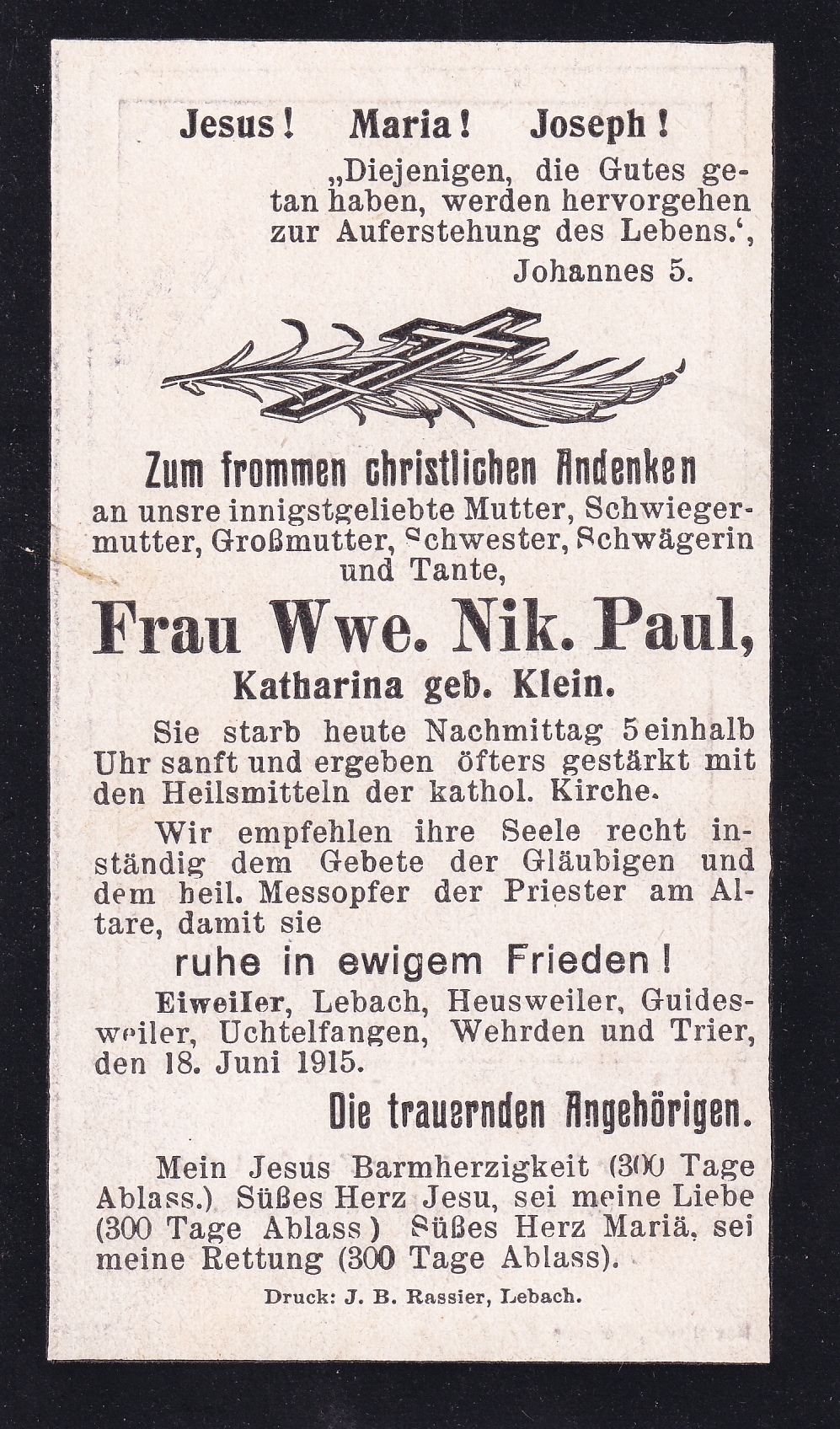 1870 heiratete er unsere UrGroßmutter Katharina Klein, *1845, aus Eiweiler.