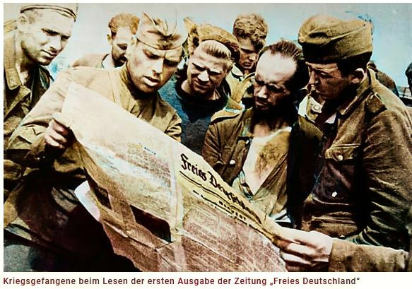 Ich hatte den Krieg tüchtig satt und meine Abenteuerlust von früher war mir tüchtig vergangen. Ich wollte auf keinen Fall mehr an die Ostfront. Aus diesem Grund bat ich meinen Cousin, Oskar Meyer (Oberleutnant), er soll mich mit nach Tallin nehmen. Denn dort gedachte ich überzulaufen um nicht in russische Gefangenschaft zu kommen. Ich erkrankte aber erst noch zu Hause (Malaria) und kam am 09. März 44 ins Lazarett nach Lebach. Mit viel List schaffte ich es das ich 4 Wochen länger im Lazarett blieb. Dann kam ich zum Ersatz-Truppenteil nach Königsberg. Von dort an die Front am Kuban Brückenkopf und kurze Zeit später in russische Gefangenschaft. Der Schrecken der letzten Tage wich immer mehr einem Erstaunen, denn was hatte man uns nicht alles gesagt was die Rote Armee mit den Gefangenen nicht alles macht. Von dem Sammellager in Tiraspol (Moldawien) ging es dann in das Donezbecken, Lager 256/10 in Krasnyj Lutsch. Im Dezember 44 erkrankte ich und kam in die Stadtkaserne in Krasnyj Lutsch ins Lazarett. Hier erlebte ich dann wieder die großmütige und sorgfältige Behandlung deutscher Kriegsgefangener durch russische Ärzte und Schwestern. Anfang April 45 wurde ich entlassen und kam ins Lager 256/2. Schon im November 44 war ich ins "freie Deutschland" eingetreten und im Lager 256/2 stellte ich den Antrag in die Antifa Legion aufgenommen zu werden. Anfang Mai 45 kam ich dann in die Antifa Schule in das Lager 165. Hier machte ich den Sommerlehrgang 45 mit und kam anschließend hier auf die Schule 40.